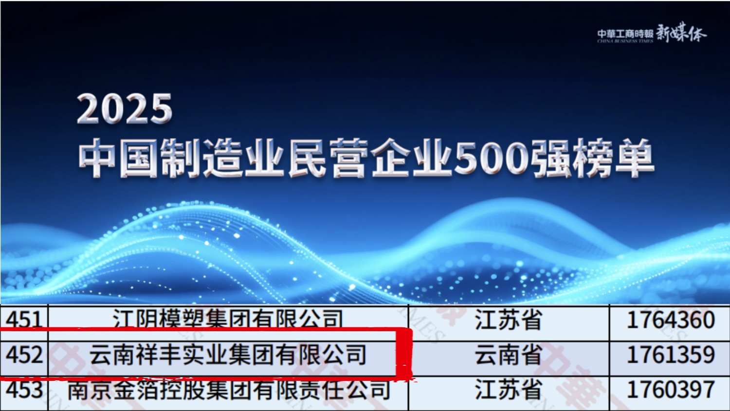 祥豐集團(tuán)榮登2025中國制造業(yè)民營企業(yè)500強(qiáng)榜單!位列全國...